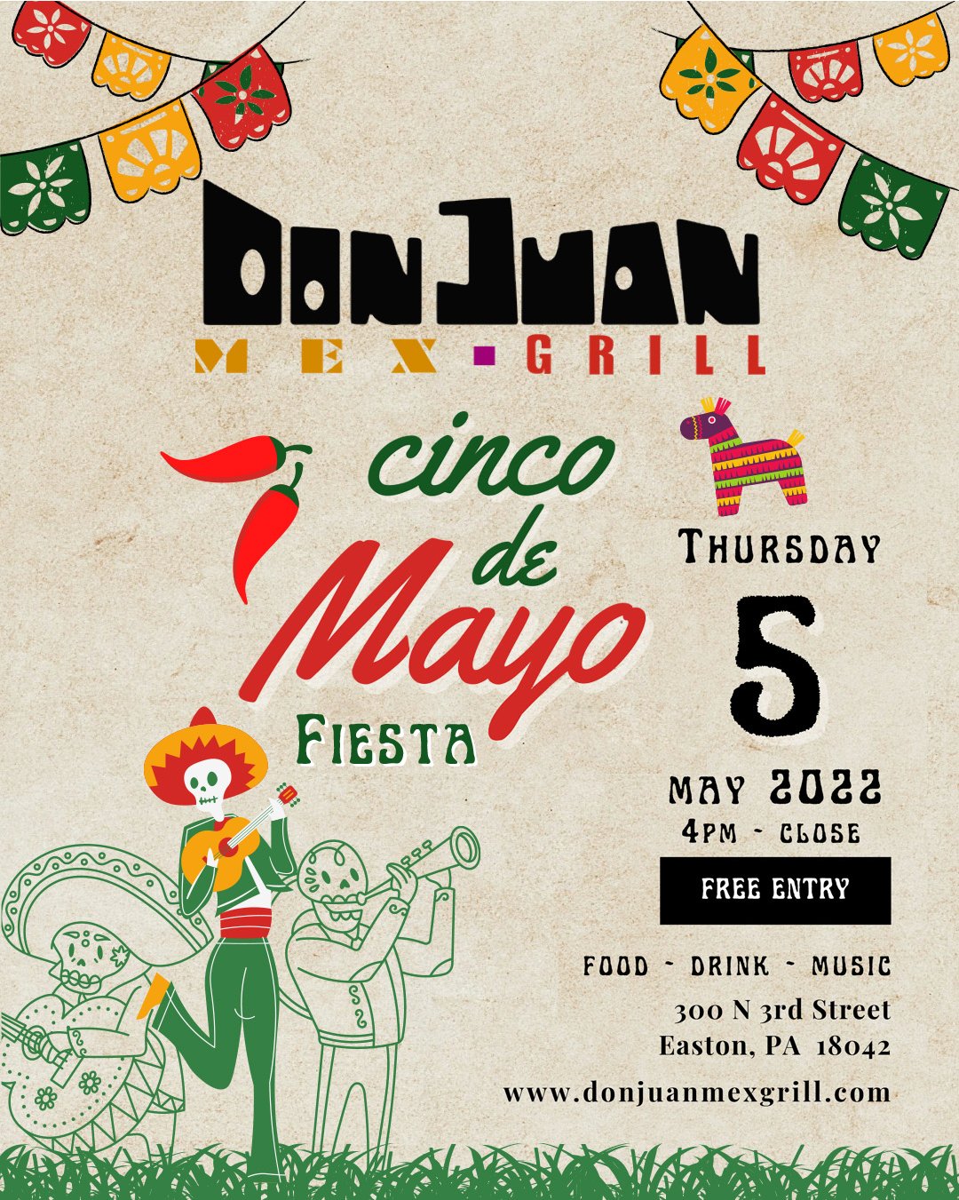 View the menu for Don Juan Mex Grill and restaurants in Easton PA. Order assistance 484 291-7619. Ad Order Delivery on Grubhub.